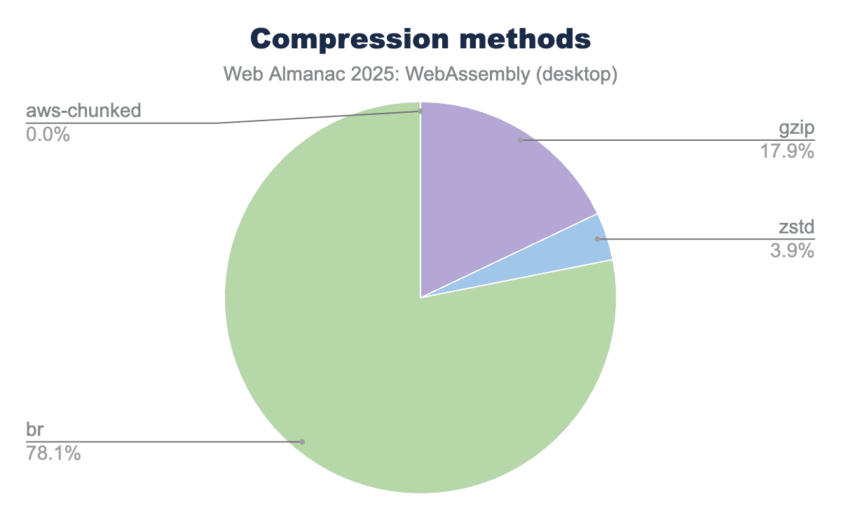 The above chart shows the size of response body size, It is often called as “raw response size” that measures only the raw, often decoded—the data payload that client received. It represents the size of the resource itself. However as per the research and common practices for Wasm deliverables, Wasm modules are compressed and optimized with various tools like Brotli and also transfered over network to the client with compression methods like gzip, br, zstd along with Content-Encoding headers.
